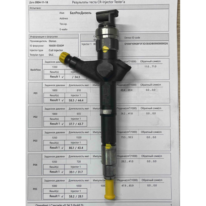 Форсунка денсо б/у проверенная, есть результаты тестирования